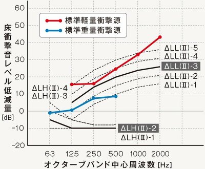 | 標準軽量衝撃源[dB] | - | 15.6 | 16.0 | 24.6 | 33.0 | 43.3 |