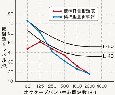 | 標準軽量衝撃源[dB] | 15.6 | 16.1 | 23.6 | 33.2 | 45.1 | 54.3 |