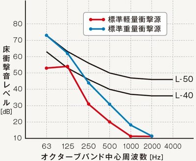 | 標準重量衝撃源[dB] | 2.2 | 4.4 | 13.8 | 15.8 | 19.3 | 23.6 |