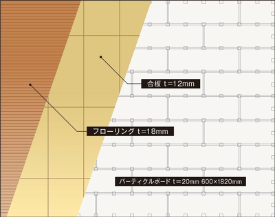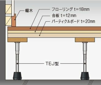 - 下張り材の厚さに関係なく、床仕上げ材の厚さが15mmおよび18mmに対応できます。