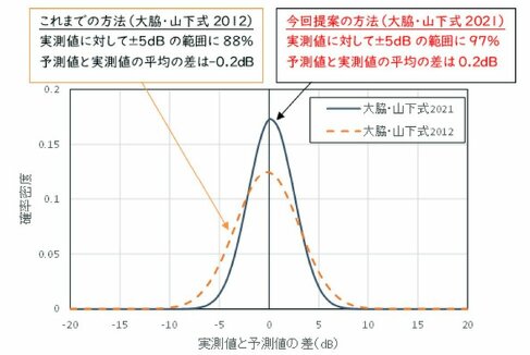 1.大脇・山下式2012と比較して,重量床衝撃音レベルの予測精度をさらに向上させました。