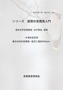 また,床衝撃音研究会では,デベロッパー,設計事務所,建設会社などの技術者向けの小冊子「シリーズ 建築の音環境入門」を2008年11月から発刊しております。読者の皆様からご意見やご要望を伺いながら,「読みやすくわかりやすい内容」と「適度なボリューム」を編集方針に掲げて継続して制作しており,2019年7月に発刊するNo.119・120が10周年記念号となります。