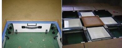 二重床の上に、石貼り、タイル貼りを行う場合のポイントは、床下地のたわみ量を抑え、衝撃や荷重が加わった場合に仕上げ材の割れ、亀裂が発生しないようにすることです。遮音性能が必要な場合や特有の音(椅子引き音など)が発生するため、万協フロアーでは各種試験で性能確認を行い、最適な仕様を提案しています。