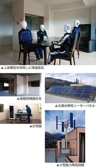 などをテーマに、実験住宅(外断熱住宅)において温湿度、使用電力量、各種設備機器の動作状況を200箇所に及ぶセンサーからデータ収集し、次世代住宅の研究、内装システムや、より快適な床下地の研究を行っています。